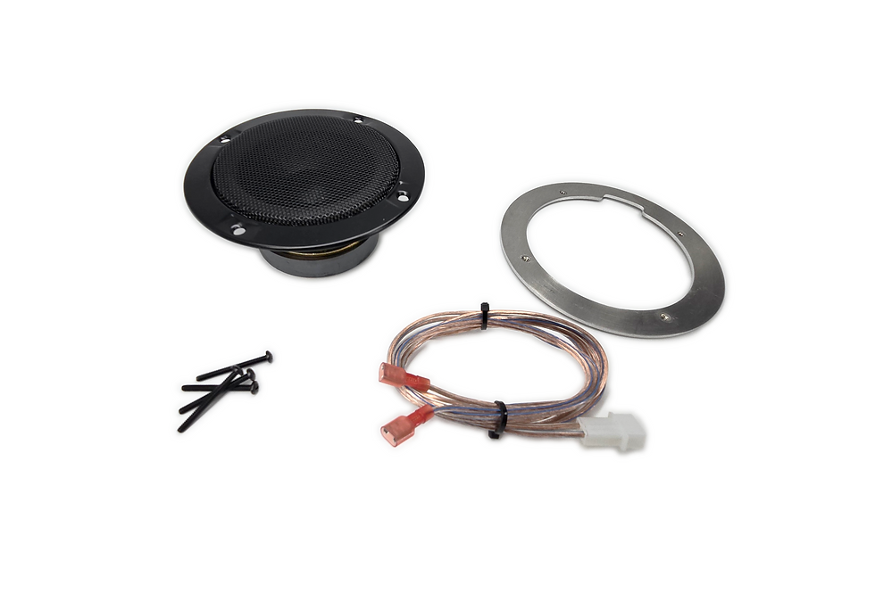 Kit includes a GM-65/8 speaker with a made-to-fit backing plate, mounting hardware, and jumper cable. The jumper includes spade connectors for the speaker and a mating connector for FasTech's speaker branch (or snip the included connector and use how you see fit).